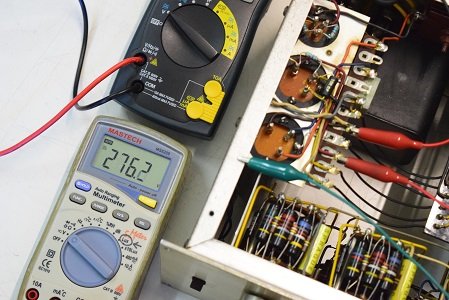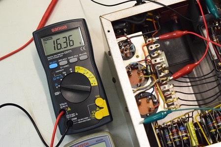 高圧セレン直後です。今回高圧セレンはそのまま流用です。電解ブロックコンデンサーが新しくなったので通りが良くなったのか少し電圧が落ちています。