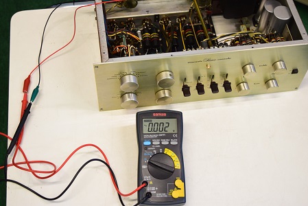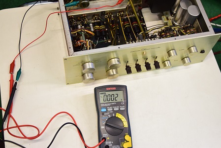 電源回路の電解ブロックコンデンサーは3本ともオリジナル仕様の新品に交換し元の姿に戻りました。抵抗類も全て交換しました。特に音に重要な所はAMRGの容量の大きいものに交換しています。