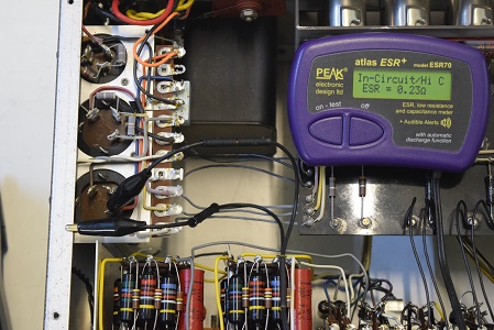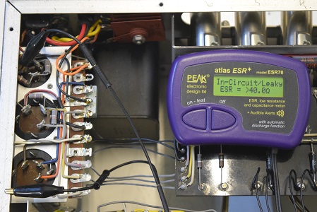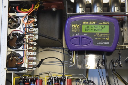 高圧先頭φ25です。Leaky表示でリークしています。しかもESRは最大値を示し、完全に機能していません。