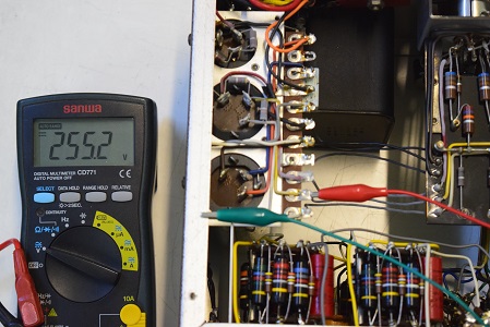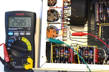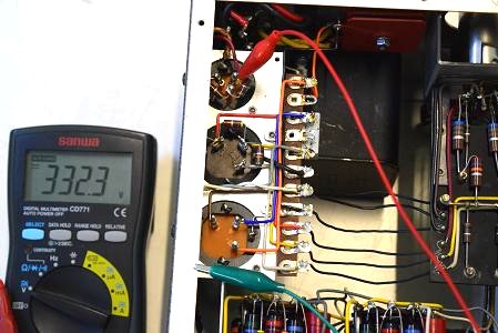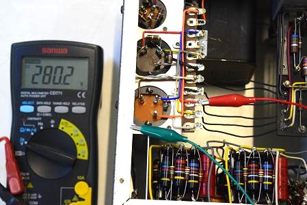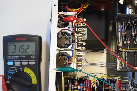高圧セレン直後の電圧です。315.2Vです。普通ここは330V位なので高圧セレンが劣化しているようです。