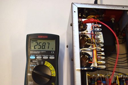 高圧セレン直後です。258.7Vです。通常ここは330V程なのでこのセレンが不良です。