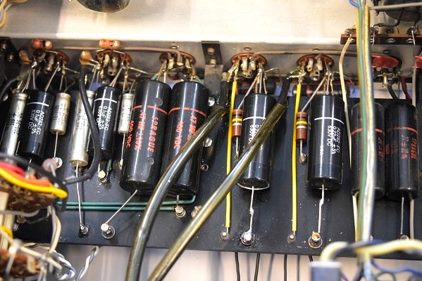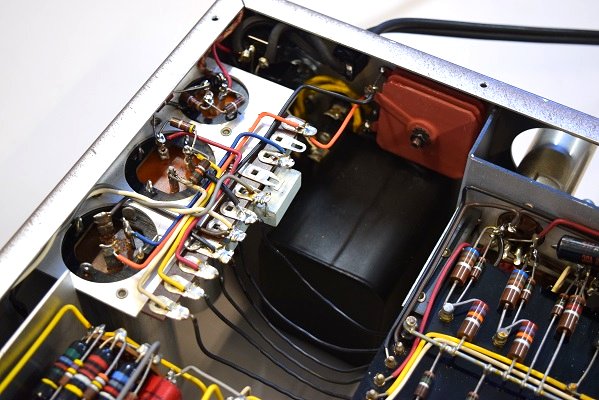 電源回路です。高圧セレンと高圧側電解ブロックコンデンサーφ25、φ35の2本をオリジナル仕様の新品に交換しました。