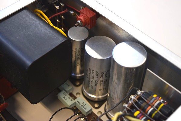内部です。とても奇麗な状態です。 カップリングコンデンサーは定番のブラックビューティーに全て交換されています。