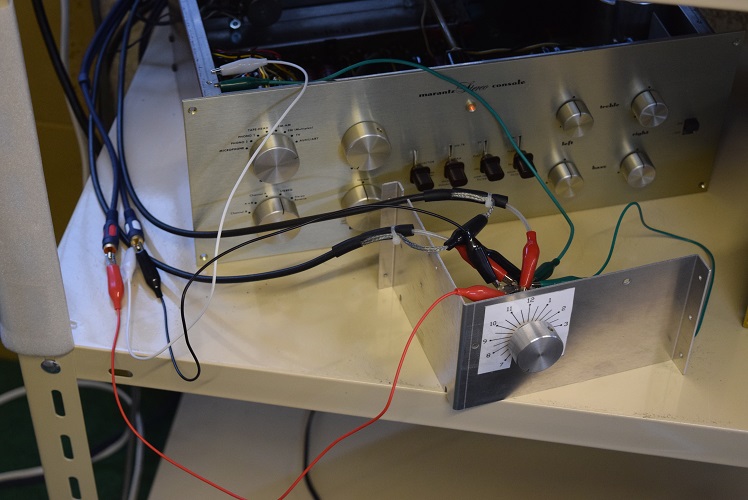 こちらのMarantz7のAUX入力とCDプレーヤー出力の間にこのボリュームを入れて音出しです。