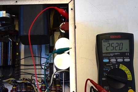 1次電圧100Vでトランスの2次側の電圧です。252.0Vを表示しています。