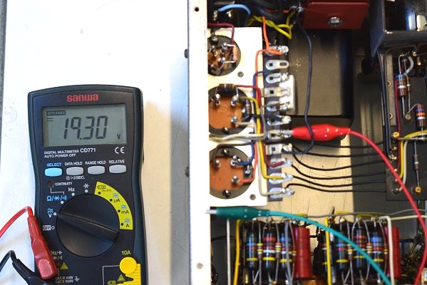 低圧セレン直後の電圧が落ちているので、ヒーター電圧もご覧のように15.38Vしか出ていません。