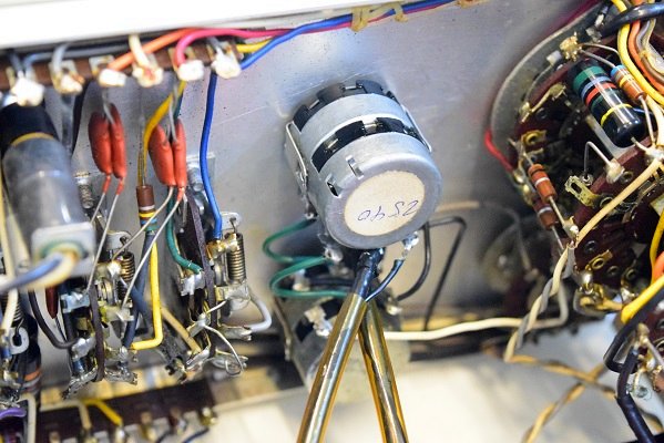 未使用で長い間保管されていたのか蒸着抵抗の表面に酸化被膜がぶ厚く覆い腐食状態なのでしょう。接点復活剤を塗布して何回も回し、当りを付けても回復しませんでした。