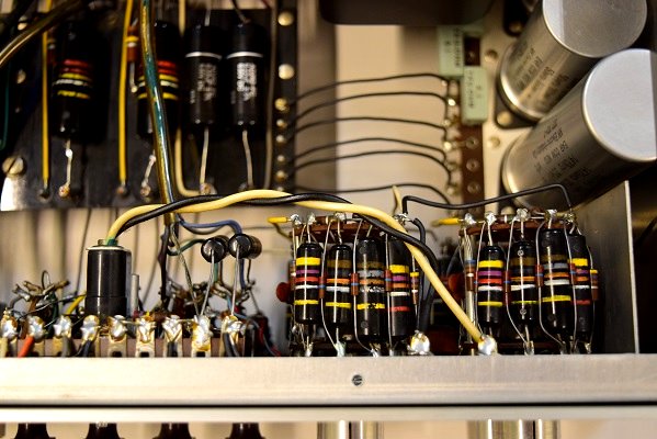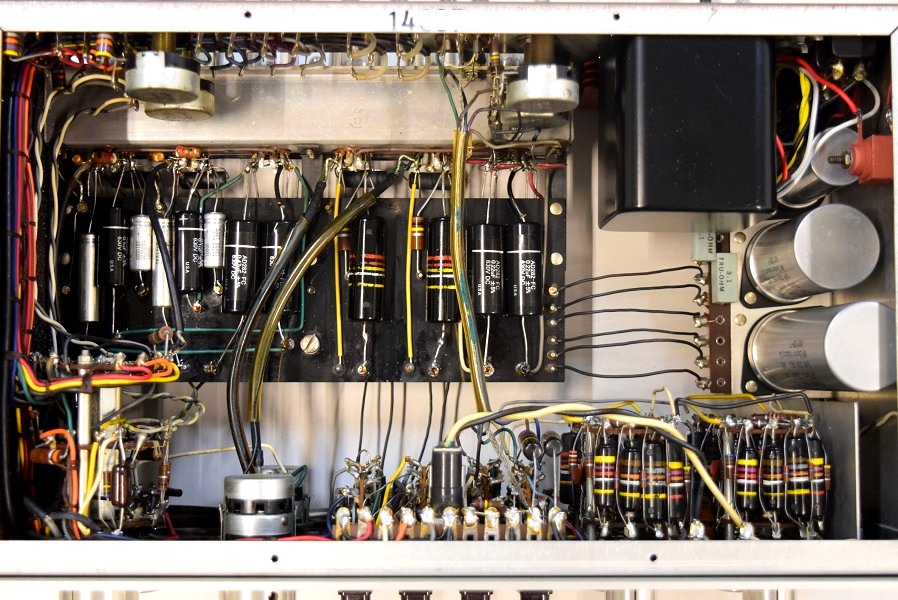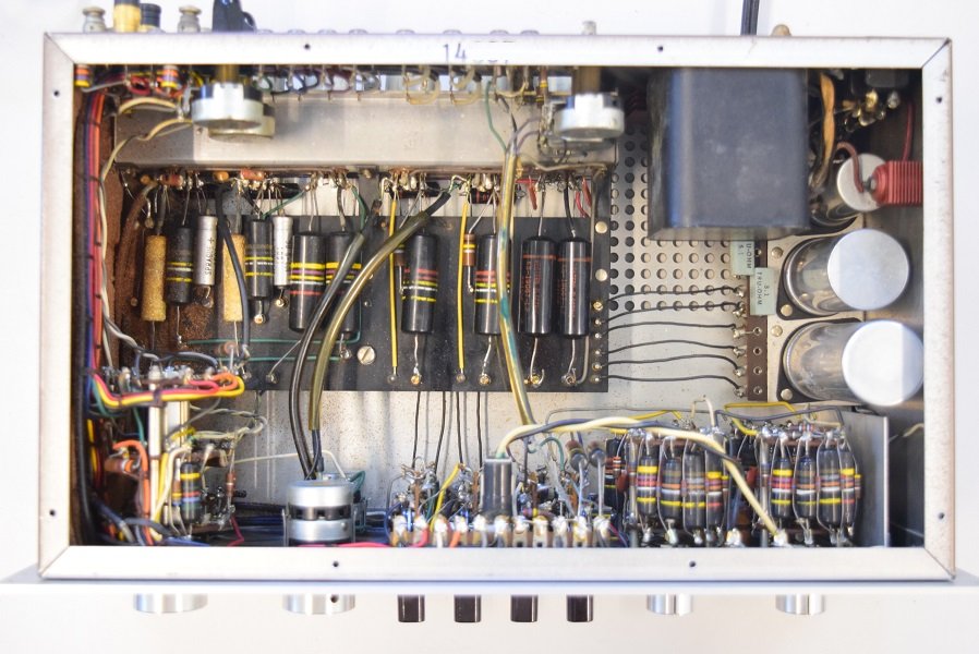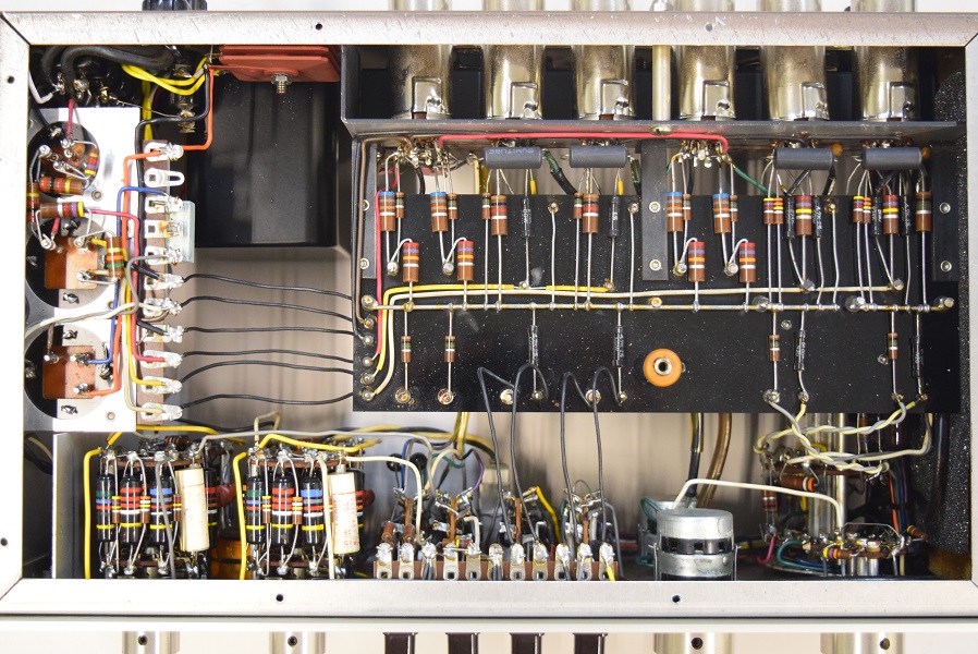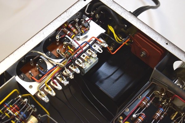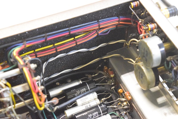 横一列の小さなカップリングコンデンサーは、以前ブラックビューティー(160P)に交換されていましたが今回Marantz7オリジナル後期型純正のGoodAll-TRWの1000V耐圧に交換しました。音の抜けが違います。