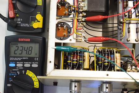 電源トランスの交換、電解ブロックコンデンサーは3本とも交換し高圧セレンも交換しました。