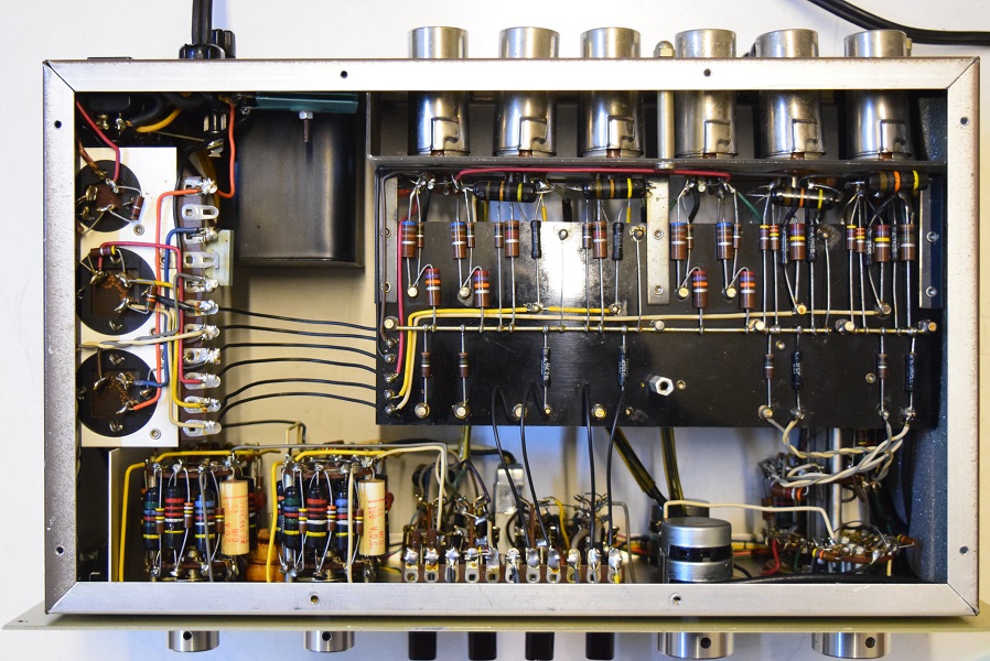 また、電源電圧も低く、最初はセレンかと思って新品交換してみましたが電圧は上がらず結局ブロックコンデンサーの20uFの真ん中が抜けていました。この20uFx3はφ25なので代品は無く、所有者の方と相談の上、電解チューブラコンデンサーを追加しました。