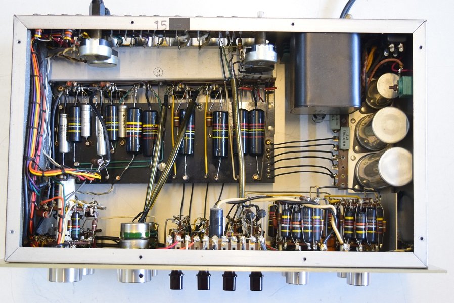 裏は0.01uF400Vのイコライザー側1本が完全に抜けていました。ライン部も2本とも容量が膨れていたので合計3本良品と交換です。