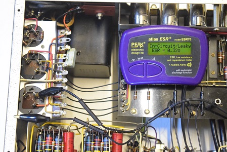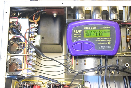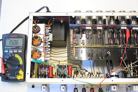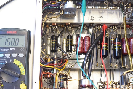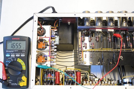 この時各回路の電圧やカップリングコンデンサーの状態、音出しでの音質やノイズのチェック、計測器に依る波形等のチェックを行います。