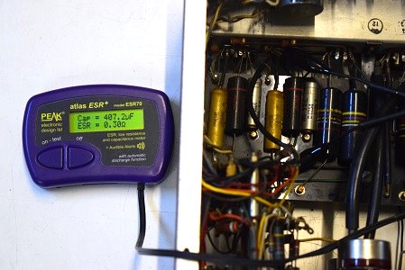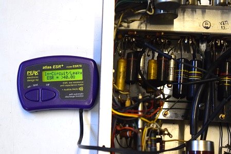 右の2段目です。Leaky表示とESRも計測限界値を越して不良です。