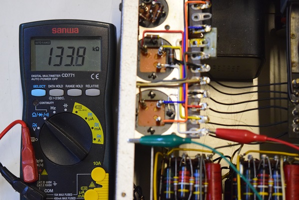 いつも通り各抵抗を計り短絡が無いかチェックすると、高圧-アース間で異常に低い抵抗値を計測しました。