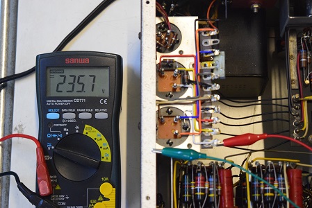 交換後こちらの高圧セレンを使って電源を入れ、各電圧を計ります。