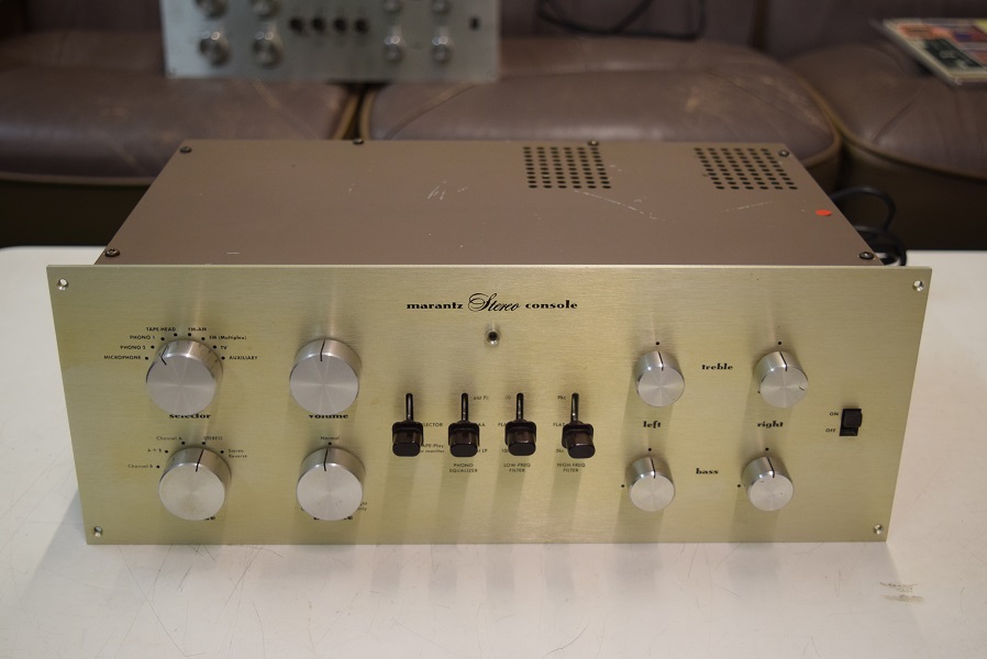 表面です。フォノイコのカソードバイパスコンを4本ともMarantz7純正SPRAGUEの新品に交換しました。またカップリングコンデンサーも0.1uF/400を交換されていた160Pから元のバンブルビーの良品に交換しました。RIAA偏差のコンデンサーも交換しました。