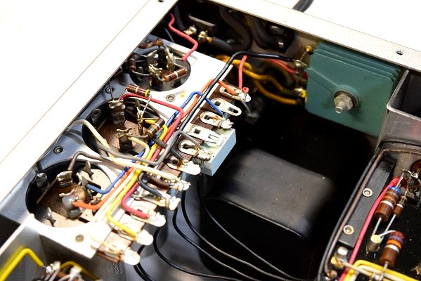 バンブルビーは全て検査済の良品を取り揃えました。フォノイコのカソードバイパスコンは全てオリジナルで良品です。ラインのセラミックコンデンサーは純正SPRAGUEの新品に交換しました。ここはMarantz7オリジナルの音を作る重要なところです。