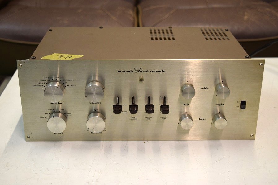 Marantz7オリジナル 16000番台です。 こちらに到着した時のパネルの状態です。各ツマミの位置が変です。左チャンネルだけで聴かれているようです。