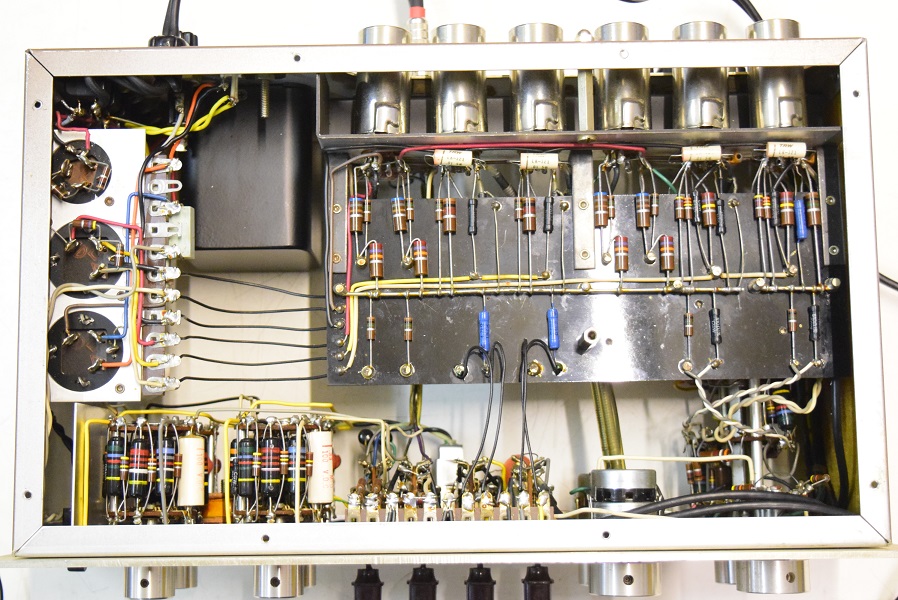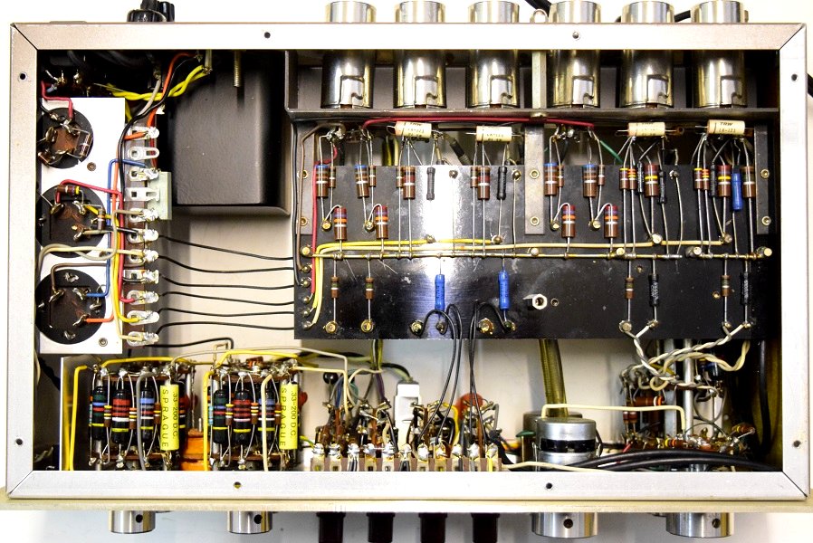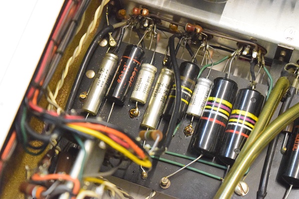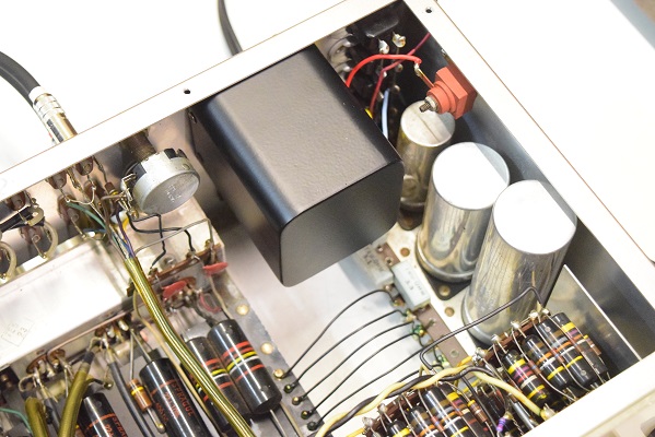 電源トランスを特注品に交換し高圧セレンも交換しました。フォノイコのカソードバイパスコンもMarantz7純正SPRAGUEの新品に4本とも交換しました。セラミックコンデンサーも純正品に交換しました。この他のカップリングコンデンサーは特に問題は無いのでそのままです。シールド線の焼け焦げた状態は少し手を加えることにより問題はありません。