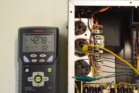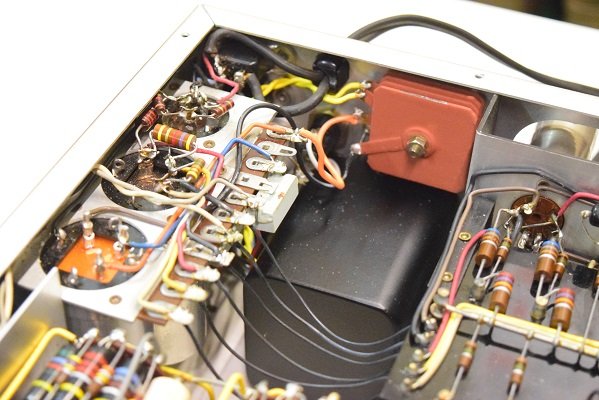 裏面です。こちらもカップリングコンデンサーと低圧セレンをブリッジダイオードに交換されています。電解ブロックコンデンサーはオリジナルのままです。