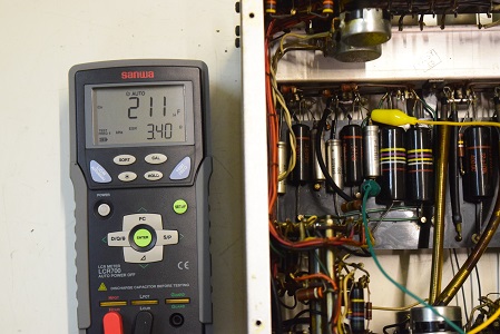 裏面です。電源回路は低圧セレンを交換しました。真空管の後の横に4本並んでいる小さなカップリングコンデンサーも良品バンブルビーに全て交換しました。真空管ケースも腐食が激しかったので当工房でバレル研磨機に掛けて磨きました。