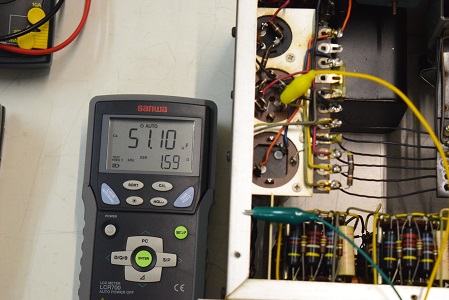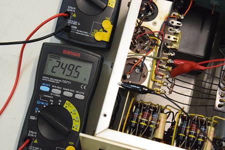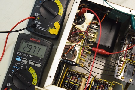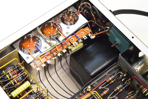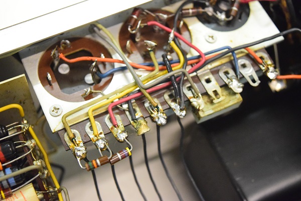 電源回路もきちんとレストアされています。代品のブロックコンデンサーを使用されています。いつもよく見る青い復刻セレンも使用されています。