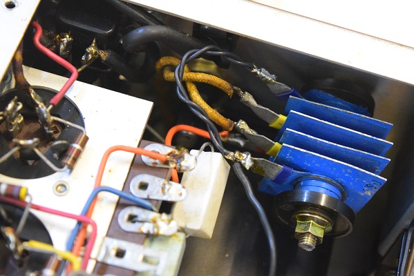 低圧セレンが違うタイプに交換され、電圧を合わせるために抵抗を追加されています。どういう訳か配線を搔き乱されています。