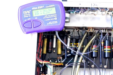 電源回路の電解ブロックコンデンサーは検査ではまだ使えそうなものも有りましたが、オーナー様のご要望で全てオリジナル仕様の新品に交換しました。