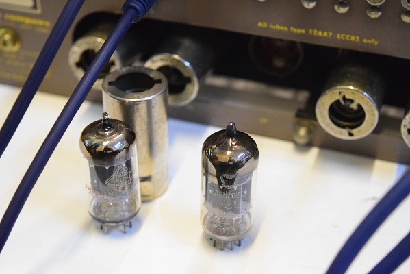 まずはV4の真空管をこちらのストック品でMullardのヴィンテージ管に交換してみます。