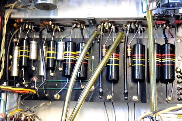 内部はまだオリジナルのカップリングコンデンサーが残っています。電源の配線が怪しい状態です。