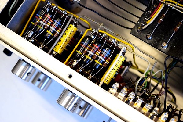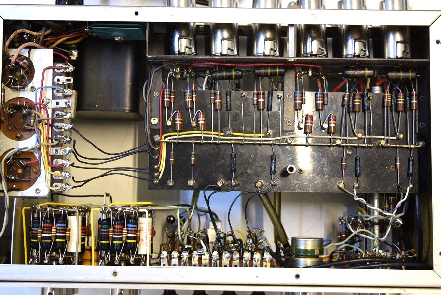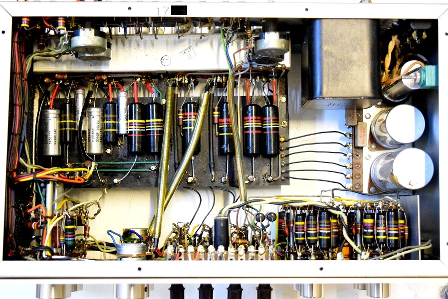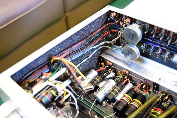 内部です。以前どこかでバンブルビーに交換されています。フォノイコのカソードバイパスコンやラインのセラミックコンデンサーも交換されています。