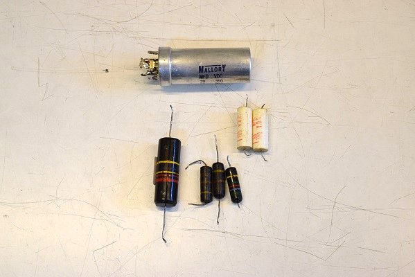 高圧先頭の小さな電解ブロックコンデンサーを正規仕様の新品に交換しました。