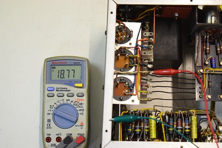 上の白いテスターはヒーター電圧を示します。15.9Vとかなり下がっています。