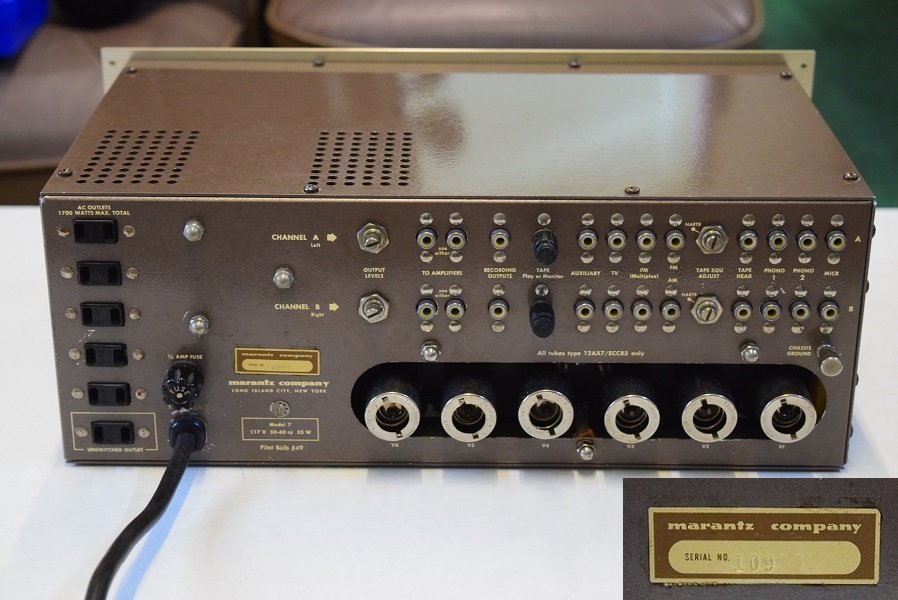 本機は1958年から登場し10001〜23000番台まで作られたMarantz#7の中では、めったに見掛けない最初期型3桁台の10900番台です。