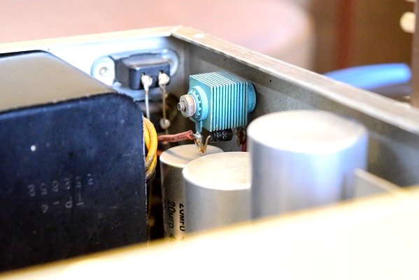 原因はこの不良になった青いバイアスセレンにダイオードをパラに接続し、後にバイアスの電圧異常から出力管のプレート電流が多く流れ、左チャンネル出力管のスクリーングリッド抵抗が焼損して煙が上がり出力トランスや電源トランスがショートしました。