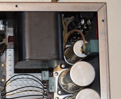 左の画像はMarantz7の配置ですが、この縦に3本並んでいる下と真中が高圧B電源のブロックコンデンサーで不良になりやすい物です。