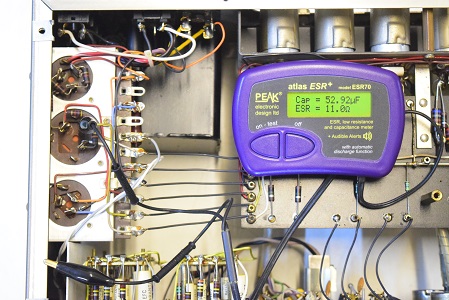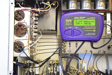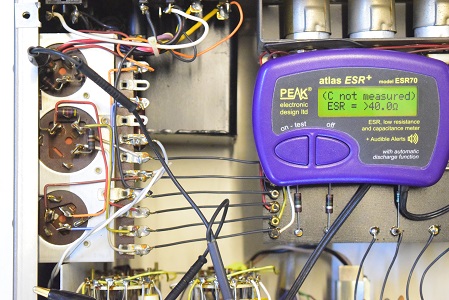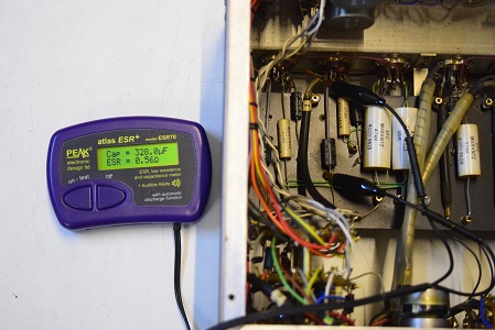 ★電源を入れる前の電解ブロックコンデンサー及びフォノイコの電解コンデンサーのチェックです。
