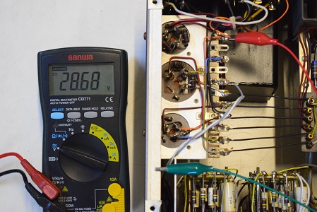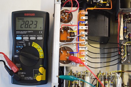 低圧ダイオード直後の電圧です。28.23Vでこちらも電源トランスの交換とは関係なく少し高い状態です。