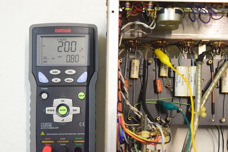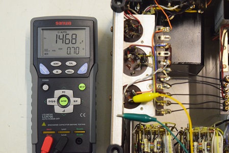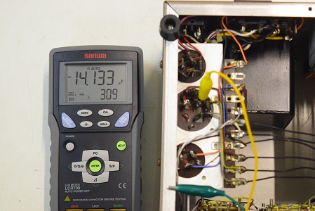 低圧のブロックコンデンサーです。こちらはどれも正常値なのでまだ使えます。