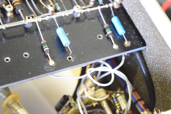 フォノイコの音が悪い原因のプレート抵抗です。左の様にラインアンプも含めて音の良いAMRGに交換しました。