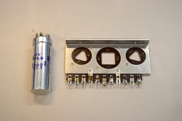 交換部品です。復刻#7の低圧用電解ブロックコンデンサーの径はφ25です。この為オリジナル仕様の電解ブロックコンデンサーの径はφ35なのでベースごと交換になります。