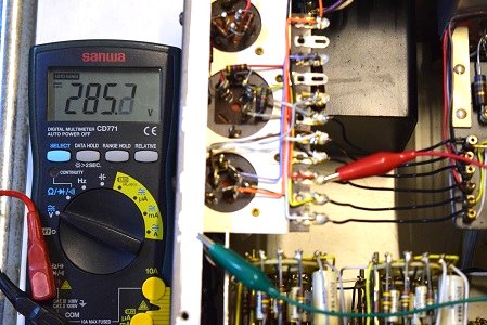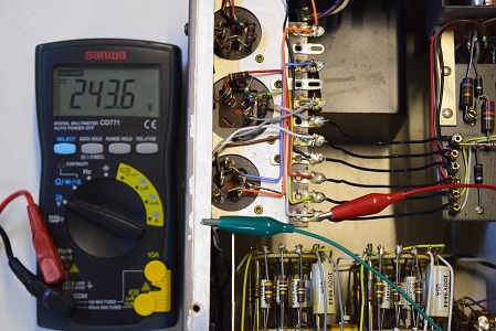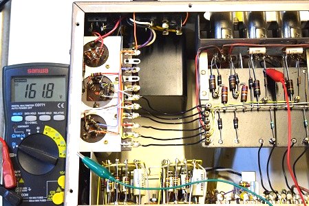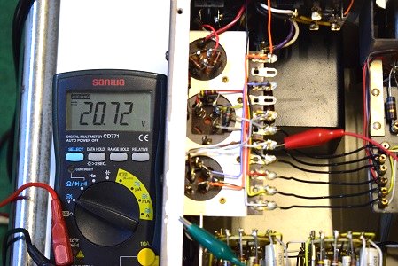 レストア完了時に電源の漏れ電圧を計ったのですが、コンセント「N」極と筐体間の電圧がAC79.4Vの漏れ電圧があり、これをオーナー様に伝えると電源トランスの交換を希望されました。
