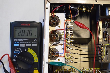 低圧整流ブリッジダイオード直後の電圧です。28.36Vをしめし良好です。