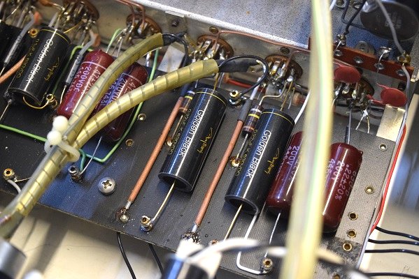 ラインアンプとフォノイコの特に音に影響する所にいつものGoldenBlackを使用し、その他はWE仕様のMarantz7オリジナル後期型純正GoodAllの近年社名が変ったTRWを使用しています。