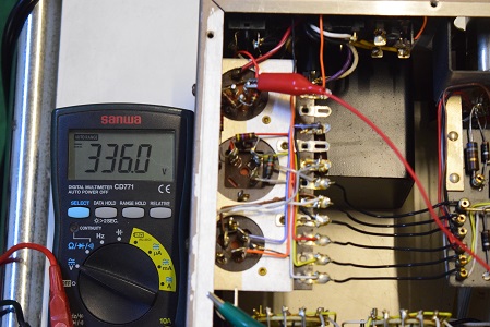 高圧ダイオード直後の電圧です。 336.0Vで良好です。
