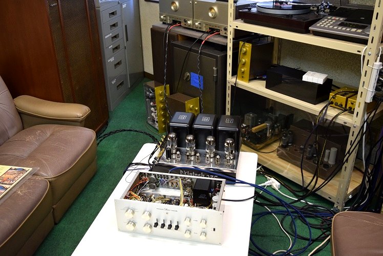 同時に修理依頼を受けたMcIntosh MC275も一緒に写っていますが、まだ修理前なのでただ今試聴しているのは 本機 + Marantz9k(改)