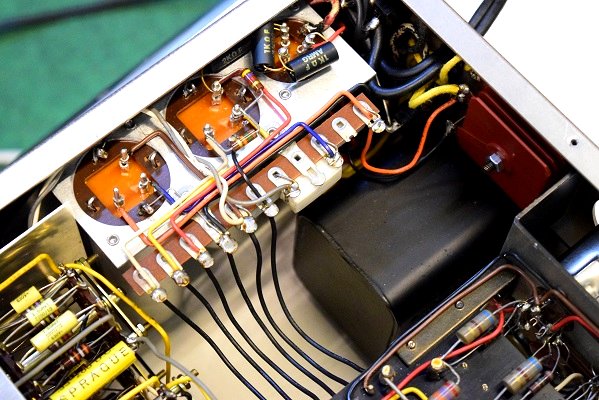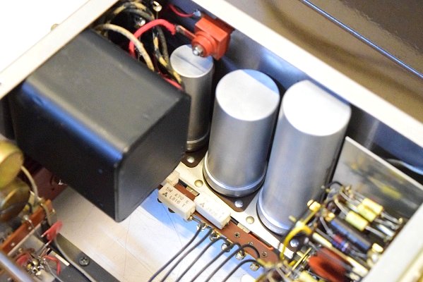 電源部です。電解ブロックコンデンサーは3本とも全てMarantz7オリジナルのレストアに用いる正規仕様の新品に交換しました。