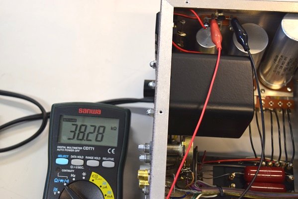 ヒーター電圧も異常に高かったので各真空管のヒーターをチェックします。どれも正常な抵抗値なので全ての真空管は幸いにも無事です。