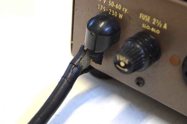 オリジナルの電源ケーブルですがご覧のように付け根が切れそうです。