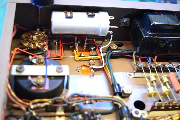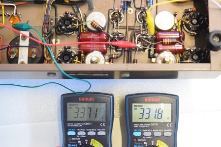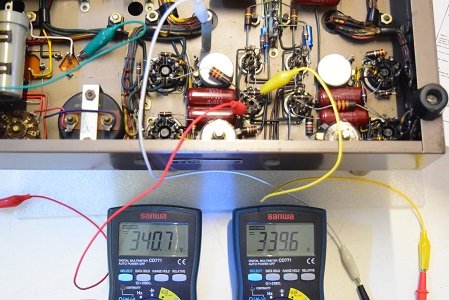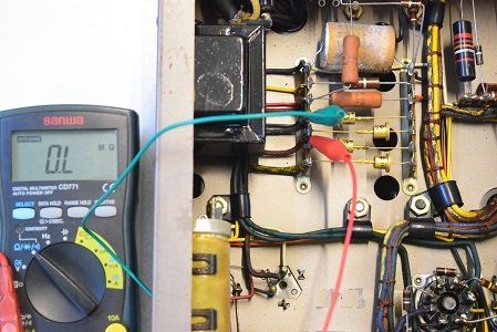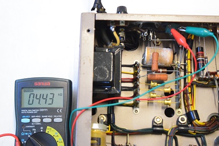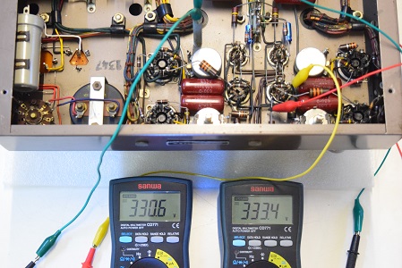 この針が振り切れる状態では出力管のプレート電圧が異常に高く出力トランスにも規定以上の高圧が掛かっていました。